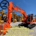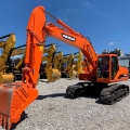 Used Doosan DH225LC-7 crawler excavator, Korean original. 21.5-ton class with reliable Doosan DB58TIS diesel engine (110 kW) and strong hydraulic system (2×215 L/min). Excellent digging force (128 kN bucket) and large working range (max depth 6.63 m). Suitable for construction, mining, roadwork, and demolition. Equipped with standard bucket, auxiliary hydraulic line for breaker/grapple, and comfortable cabin. Well-maintained, low hours, ready for inspection and worldwide delivery.