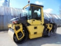 ROPS-cabine with heater. Drive and vibration front and rear, split drums 1.500 mm. 5 steering ways. Vibration front and rear, 2 frequencies and 2 amplitudes, automatic vibration, asphalt temperature indicator. Water sprinkler. 4-cyl. Kubota diesel turbocharged, 55.4 kW - 75 hp. Traffic and working lights, rotating beacon. 2 edge cutting and pressing devices, precision gravel spreader Bomag BS 150. CE compliant. Operating weight approx. 7.300 kg.