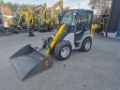 Liten och smidig hjullastare/lastmaskin. Tack vare 4-hjulsstyrningen får man en extremt liten vändradie och mycket bra stabilitet även vid full belastning. Betydligt bättre förarmiljö avseende insteg, sikt, ljud och rymlighet med den nya hytten.