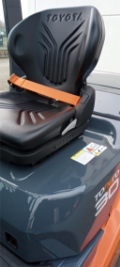 LED Rückkombileuchte, Blaues Warnlicht nach hinten gerichtet, Multifunktionsdisplay - inkl. Einstellung der max. Fahrgeschwindigkeit - inkl. Anzeige des Lastgewichts - inkl. Neigewinkelanzeige - inkl. Energieverbrauchsanzeige mechanische Hebel mit Fahrtrichtungsumschalter an der Lenksäule, Sitz Grammer MSG 65 inkl. Sicherheitsgurt Orange & Gurtschloss-Überwachung, Hochleistungslichtmaschine, lastabhängige Servolenkung, Schutzabdeckung für Übergang Neigezylinder zum Fahrgestell, Schlüsselschalter