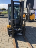 Sonderausstattung: Bluespot hinten, SpecialEquipment: 3. Ventil, 4. Ventil, Arbeitsscheinwerfer hinten, Arbeitsscheinwerfer vorn, Frontscheibe, Halbkabine, Heizung, Vollfreihub, Scheibenwischer, OtherAttachments: Seitenschieber, Zinkenverstellgerät