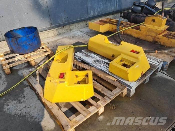 2x3 Counterweights left(1000€), right(1000€), central(3000€) for CAT 980H loader Ref: 349-2651 2x3 Left, right, central counterweight for wheel LoaderCAT 980H Other parts available: 2 headlight supports 4 spreaders and 2 stretchers 4 bucket lifting cylinders 4 lifting cylinders Axles Other parts available: 2 headlight brackets 4 lifting beams (yock) and 2 complete arms 4 bucket crowding cylinders 4 lifting cylinders Axes