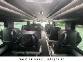 Komfortable VIP-Passagiersitze mit verstellbarer Rückenlehne und Seitenverstellung (Seitenverstelung nur bei doppelsitzen), Hersteller: Intap, Modell: Novis, Sitze ausgestattet mit: Dreipunkt Sicherheitsgurten, Haltegriffen, Gepäcknetzen, profilierten Kopfstütze, Sitze teilweise aus Kunstleder/Alcantara, Beifahrersitz (im gleichen Sitzbezug wie Fahrgastsitze), Fahrersitz komplett in Stoff schwarz original MB Stoff Maturin schwarz, hinter Beifahrersitz an Abschrankung eine schmale Ablage mit 2 Vertiefungen für Becher, letzte Sitzreihe auf Podest -verstellbar bnach vorne und hinten (Schienensystem), Drei Einzelsitze mit Schnellwechselsystem (leichtes Abnehmen durch hintere Tür), Alle Sitze auf dem Podest, Montage im Schienensystem (Schnell-Demontage)