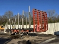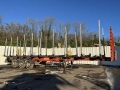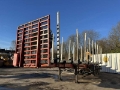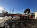 Cette remorque grumière de la marque Fruehauf est de 3 essieux.