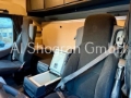 Achslast - Messeinrichtung, Achslast Vorderachse 8,0 t, Anhängersteckdose 15-polig 7+7-polig, Audiosystem: Digitalradio DAB / DAB+, Ausstattungs-Paket: Media, Ausstattungs-Paket: Safety, Ausstattungs-Paket: Stauraum, Batterie 220 Ah (AGM), Drucklufthorn, Fahrassistenz-System: Fernlichtassistent und Abbiegelicht, Fahrerhaus: mit Luftfederung, Federung: Vorderfedern 8,0 t, 2 Blatt, Feuerlöscher, Getriebe 12-Gang - Typ: G 281-12, Heckleuchten LED, Integralheck, Klapptisch in Brüstung, Klimaautomatik, Kotflügel 3-teilig, Kraftstofftank: 630 Ltr. Aluminium, links, Kraftstofftank: Zusatztank 430 Ltr. Aluminium, rechts, Kühlbox / Kühlschrank, Luftleitkörper Dach (rastbar) und seitlich, Montageplatte / Sattelplatte 40 mm für Sattelkupplung 20 t, Motorbremse verstärkt, Radstandvariante 3850 mm, Rahmenüberhang 1050 mm, Raucher-Paket, Regensensor, Reifendruck-Kontrollsystem, Rückfahrwarner akustisch und Warnblinklicht (Warnsignal außen), Sattelkupplung: manuell geschmiert, Schalter für MirrorCam am Bett, Schiebe-/Hebedach elektrisch (Glas), Schlüssel mit Fernbedienung zusätzlich (2), Schnittstelle Flottenmanagement-System, Schubladen unter Brüstung, Sitzbezug / Polsterung: Beifahrersitz Velours, Sitzbezug / Polsterung: Fahrersitz Velours, Sitze im Fahrerhaus: Fahrersitz Schwingsitz Komfort, Stahlfelgen 11.75x22.5 (an Vorderachse), Standklimaanlage elektrisch, Stauklappe außen links, Steckdose 12V / 15 A im Beifahrerfussraum zusätzlich, Vorhang Schlafkabine, Warneinrichtung Sicherheitsgurte