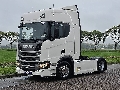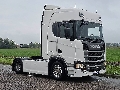 Number of axles: 2, Configuration: 4x2, Twin tires, Own weight: 8280 kg, Gross vehicle weight: 19000 kg, Total fuel capacity: 1140 litre, 2nd fueltank, Fifth wheel height: 108 cm, fifth-wheel: Fixed, Diff. locks: 1, Cabin type: High roof, Cruise control, Tacho, Digital tachograph, Airconditioning, Parking Airco, Parking heater, Electric windows, Electric mirrors, Radio/cassette, GPS navigation, Color: white, Heated mirrors, Lighting type: Halogen lamps, Laneassist, Climatecontrol, Seat heating, Bluetooth, Engine capacity: 331 Kw (444 Hp), Fuel type: diesel, Euro: 6, Gearbox kind: Opti-cruise, Gearbox make: Scania, Number of Gears: 12, Add. break system, Retarder make: Scania, Power steering, ABS, ASR, Starter battery, Central locking, Seats configuration: 1+1, Seat cover: cloth, Chair adjustment: Manually